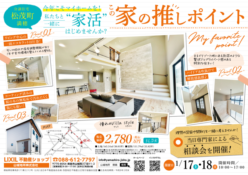 【イベント情報】1月17日(土)・18日(日)★川内町大松&松茂町満穂 分譲住宅販売&相談会開催★