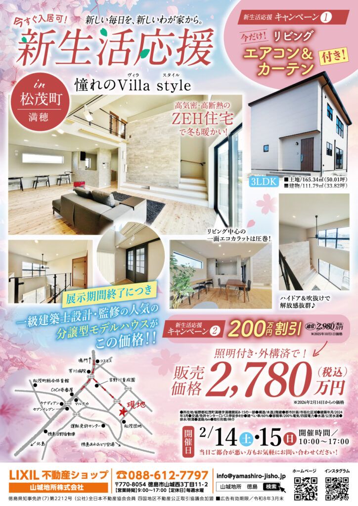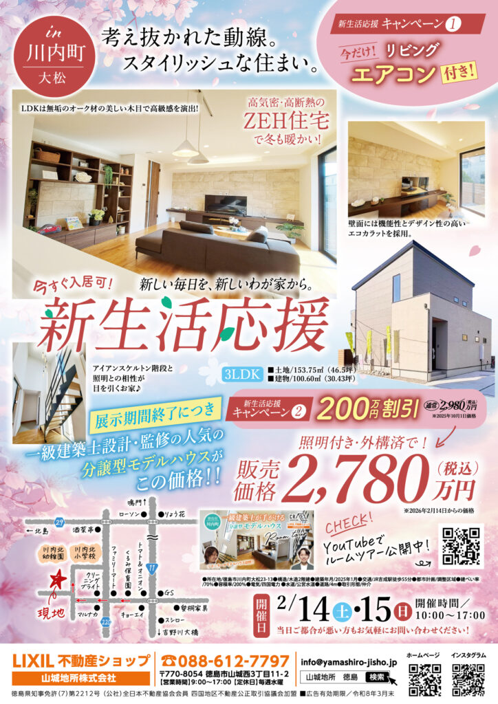 【イベント情報】2月14日(土)・15日(日)★川内町大松&松茂町満穂 分譲住宅販売&相談会開催★
